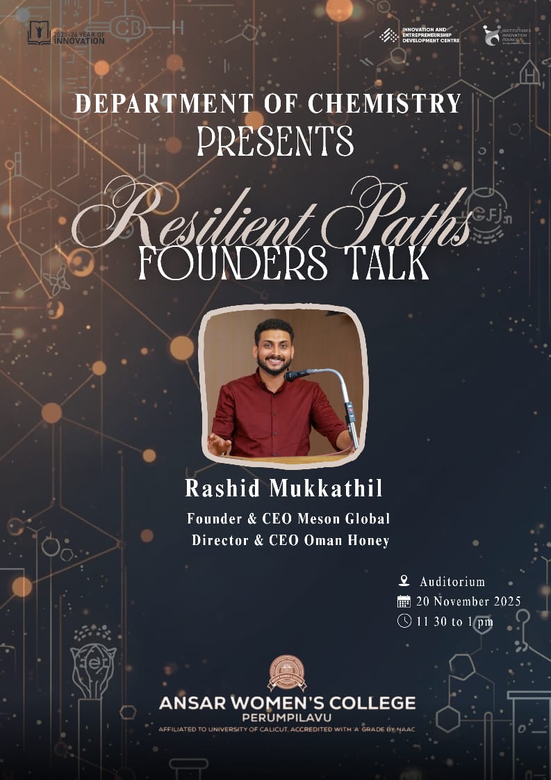Resilient Paths was an inspiring session led by Rashid Mukkathil, Founder and CEO of Meson Global Institute. He shared key moments from his entrepreneurial journey, highlighting the value of resilience, focus, and continuous learning. The talk motivated students to face challenges confidently and shape their own successful paths