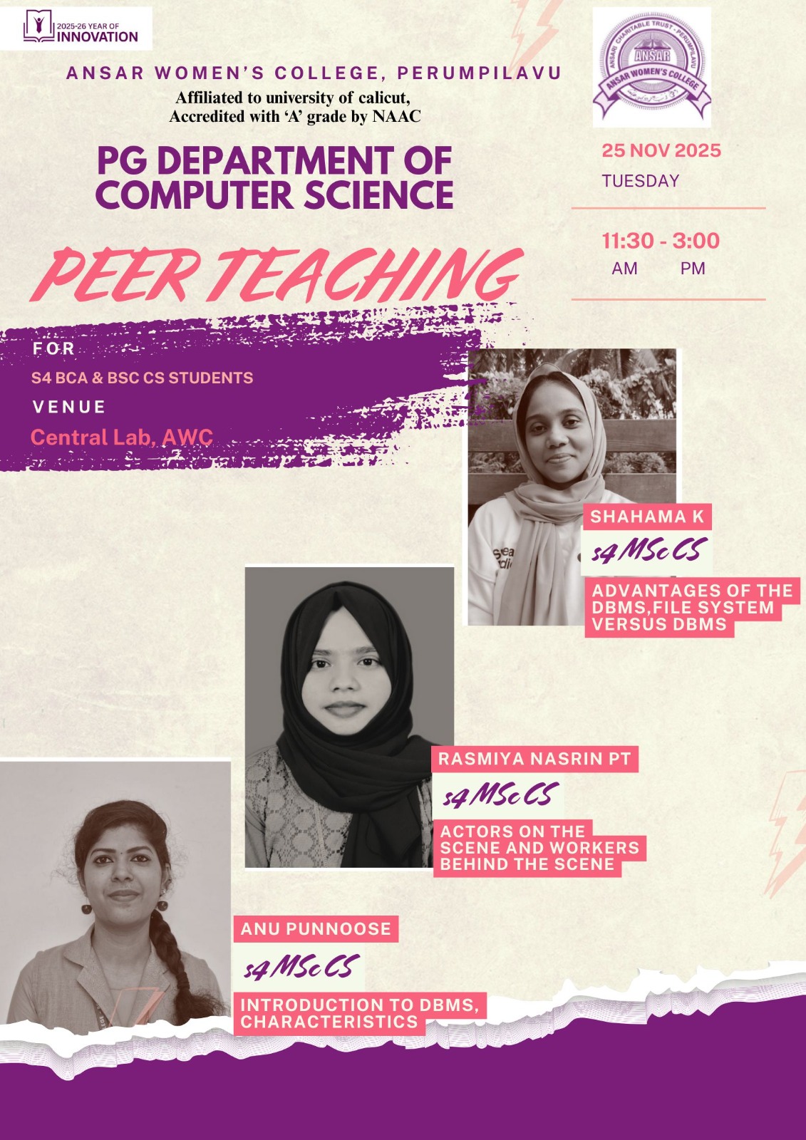 The session was led by Ms. Shabeena P K, Assistant Professor, PG Department of Computer Science. Her engaging and interactive approach helped students understand the effective use of various Google tools in their academic projects and future professional activities.