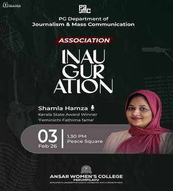 The PG Department of Journalism & Mass Communication is organizing the Vanguard Film Festival from 29th to 3rd, along with the Association Inauguration on 3rd February, featuring an interaction with Shamla Hamza, Kerala State Award Winner and Actor (‘Feminichi Fathima’ fame)